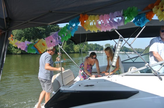 Prachtig weer, en veel volk present voor onze eerste apéro bateau...